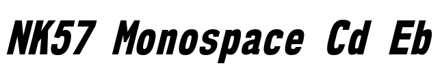 NK57 Monospace Ex Eb Font Metadata Name: NK57 Monospace Ex Eb Subfamily: Italic Subfamily ID: 1.000;TYPO;NK57MonospaceExEb-Italic Full Name: NK57MonospaceExEb-Italic Version: Version 1.000 Weight: 800...