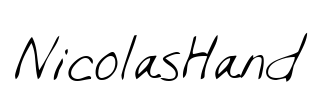 NicolasHand Font Metadata Name: NicolasHand Subfamily: Regular Subfamily ID: Weatherly Systems, Inc. NicolasHand Regular Full Name: NicolasHand Regular Version: Media Graphics Copyright (c)1997 Media ...