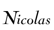 Nicolas Font Metadata Name: Nicolas Subfamily: Italic Subfamily ID: SoftMaker Software GmbH Nicolas-Italic Full Name: Nicolas-Italic Version: Version 1.0 08-10-2002 Weight: 400 Postscript: NicolasItal...