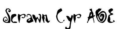 Scrawn Cyr AOE Font Metadata Name: Scrawn Cyr AOE Subfamily: Regular Subfamily ID: Macromedia Fontographer 4.1.2 Scrawn Cyr AOE Full Name: Scrawn Cyr AOE Version: Macromedia Fontographer 4.1.2 2/10/99...
