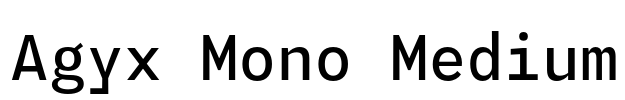 Agyx Mono Medium Font Metadata Name: Agyx Mono Medium Subfamily: Regular Subfamily ID: 1.000;UKWN;AgyxMono-Medium Full Name: Agyx Mono Medium Version: Version 1.000;Glyphs 3.3.1 (3343) Weight: 500 Pos...