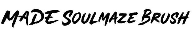 MADE Soulmaze Brush Font Metadata Name: MADE Soulmaze Brush Subfamily: Regular Subfamily ID: MadeType: MADE Soulmaze Brush: 2019 Full Name: MADESoulmazeBrush Version: Version 1.000 PERSONAL USE Weight...