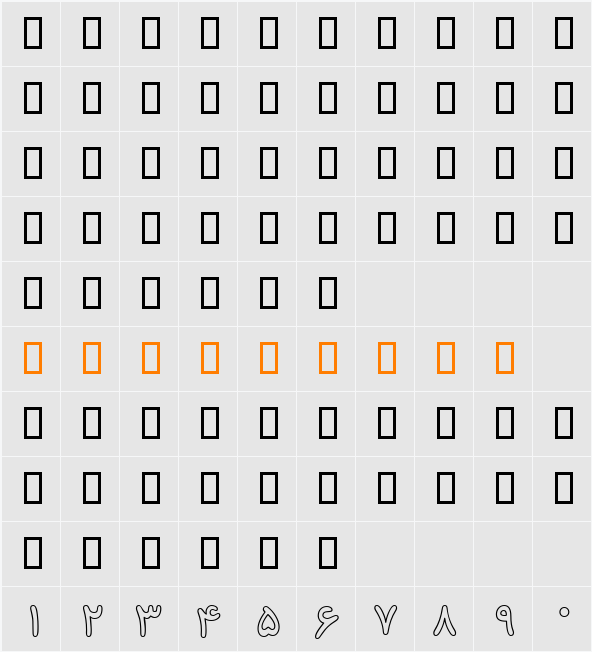 B Koodak Outline Character Map