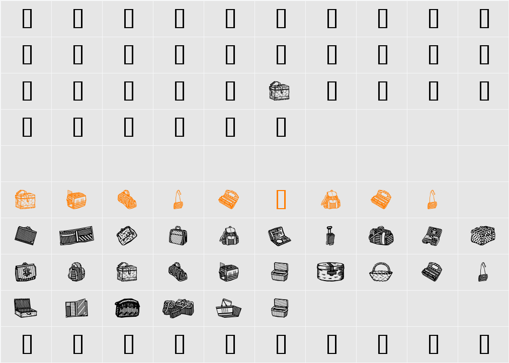 Bags and stuff Character Map