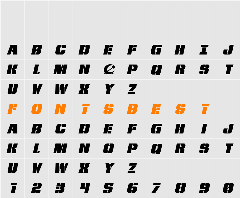 From BOND With Love Expanded Italic Character Map