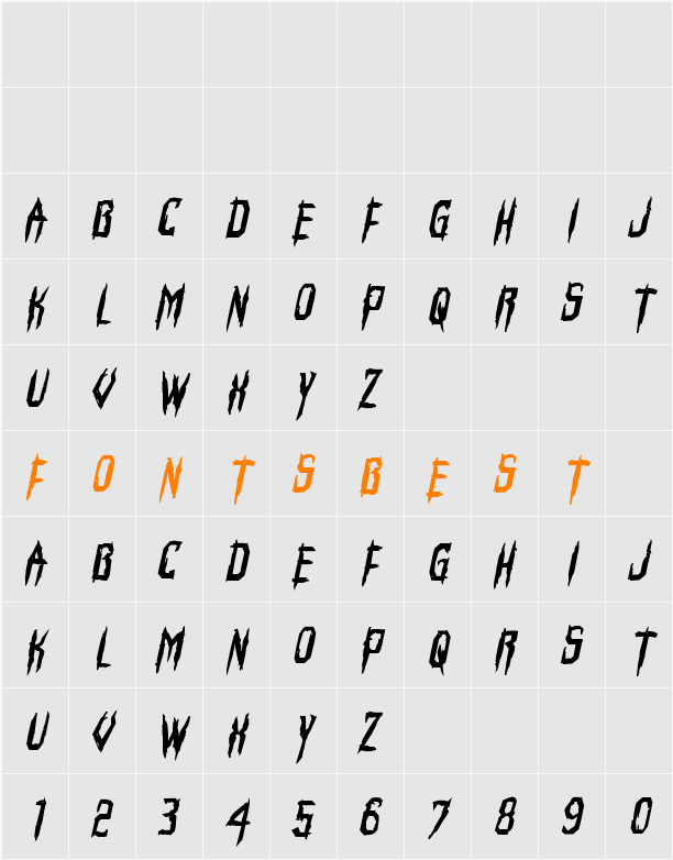 Horroroid Bold Italic Character Map